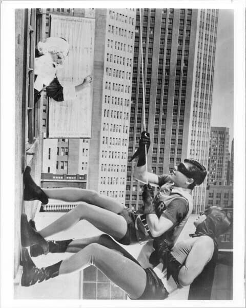 Batman TV 8x10 photo West & Ward climb up building Santa Claus at window
