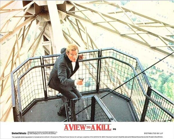 A View To A Kill 1985 original 8x10 lobby card Roger Moore on Eiffel Tower