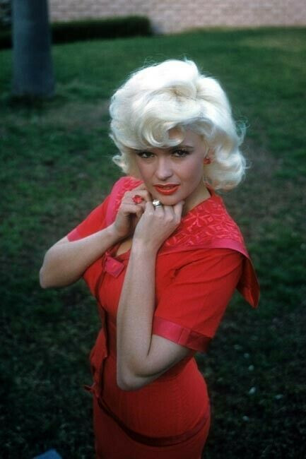Jayne Mansfield circa 1967 wearing red dress 4x6 inch photo