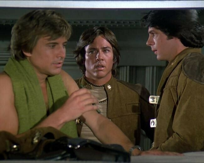 Battlestar Galactica TV bare chested Dirk Benedict Richard Hatch 8x10 inch photo