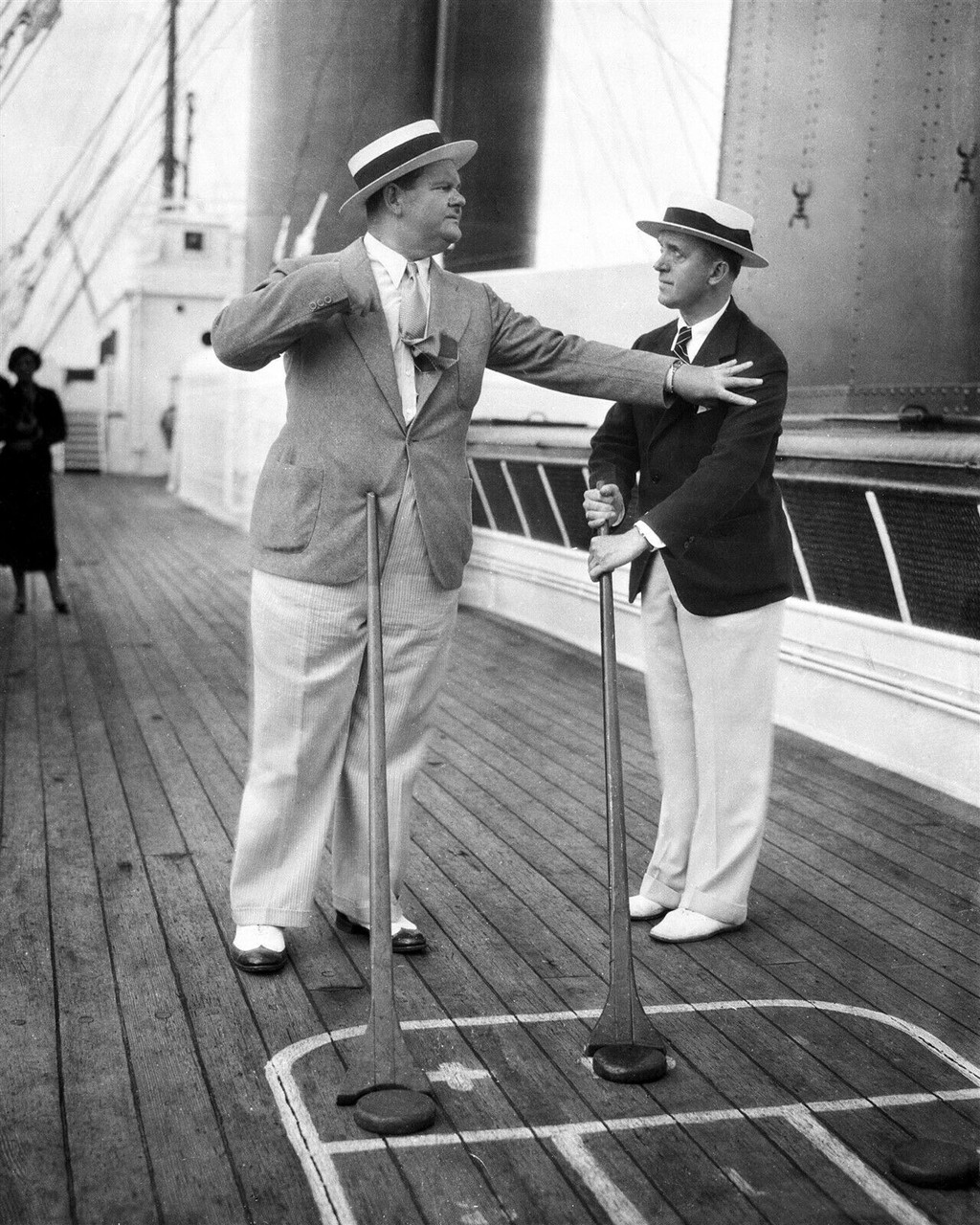 Laurel and Hardy Stan Ollie onboard S.S. Paris 1932 play deck quoits 8x10 photo
