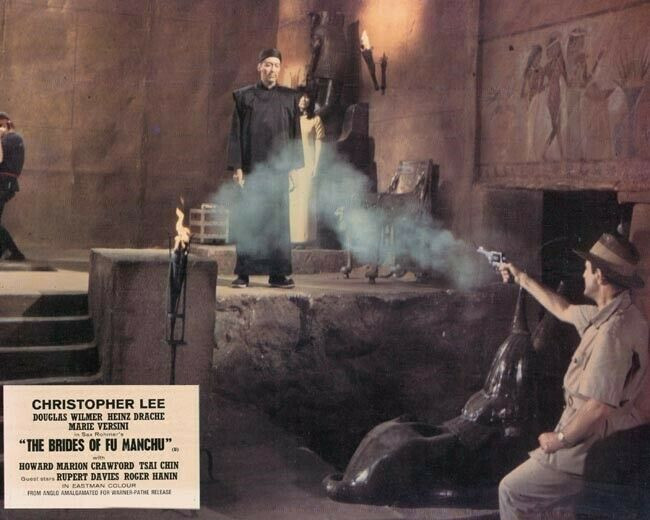 The Brides of Fu Manchu Douglas Wilmer fires gun at Christopher Lee 8x10 photo