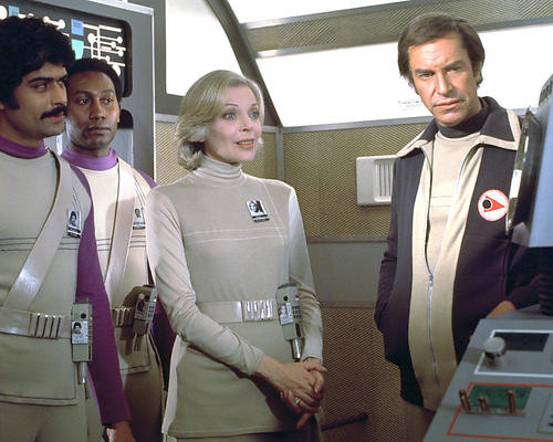 An image of Martin Landau as Commander John Koenig and Barbara Bain as Dr. Helena Russell in Space: 1999 available as a poster, photograph or aluminum metal print. Your satisfaction guaranteed.