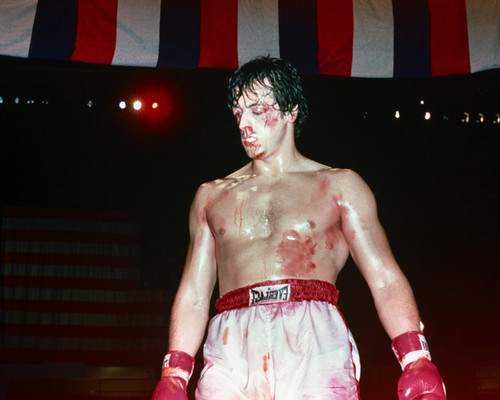 An image of Sylvester Stallone as Rocky Balboa in Rocky III available as a poster, photograph or aluminum metal print. Your satisfaction guaranteed.