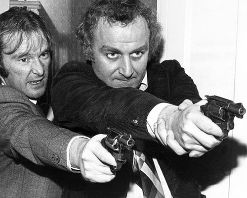 An image of John Thaw as Det. Insp. Jack Regan and Dennis Waterman as Det. Sgt. George Carter in The Sweeney available as a poster, photograph or aluminum metal print. Your satisfaction guaranteed.