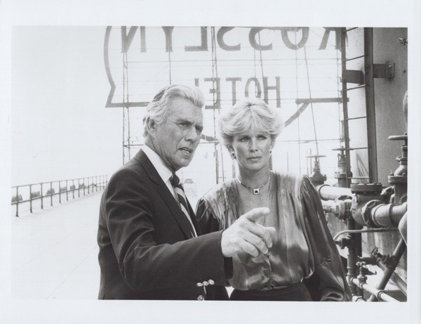 Dynasty 1981 John Forsythe & Linda Evans on hotel rooftop 8x10 inch photo